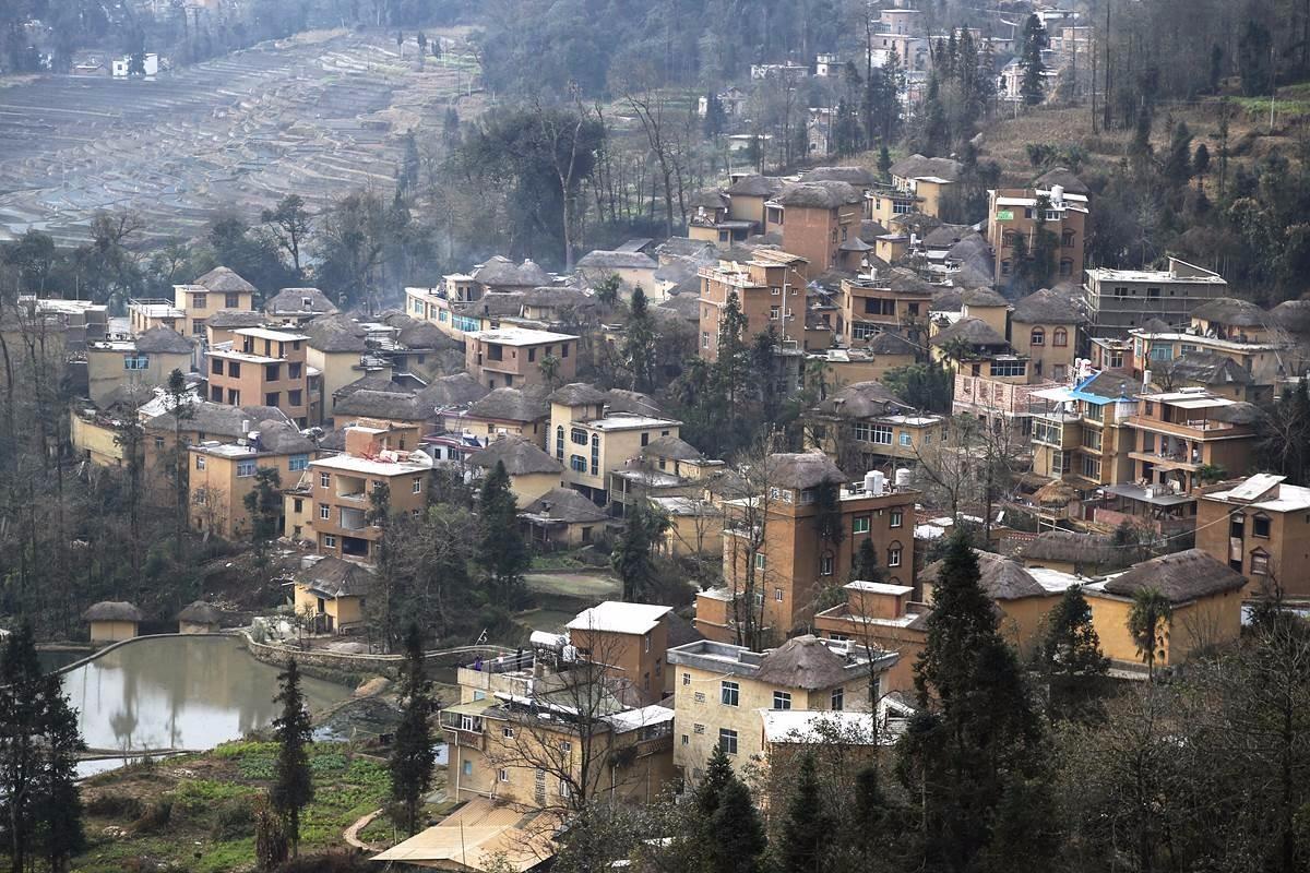 今天云南当地很多建筑都做改造了,但有的地区还专门留着这个茅草屋顶的建筑形式。这是元阳梯田附近的村镇。