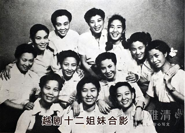 越剧十二姐妹分别是——前排左起:张桂凤、吴小楼、徐天红,二排左起:尹桂芳、竺水招、徐玉兰,三排左起:陆锦花、范瑞娟、傅全香、袁雪芬、王文娟、戚雅仙。