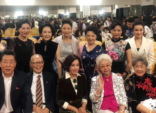 照片中,我们看到了老艺术家田华、张勇手、陶玉玲的的身影,还有80年代崛起的电影明星刘晓庆、王馥荔、宋晓英、岳红、辛明等人。