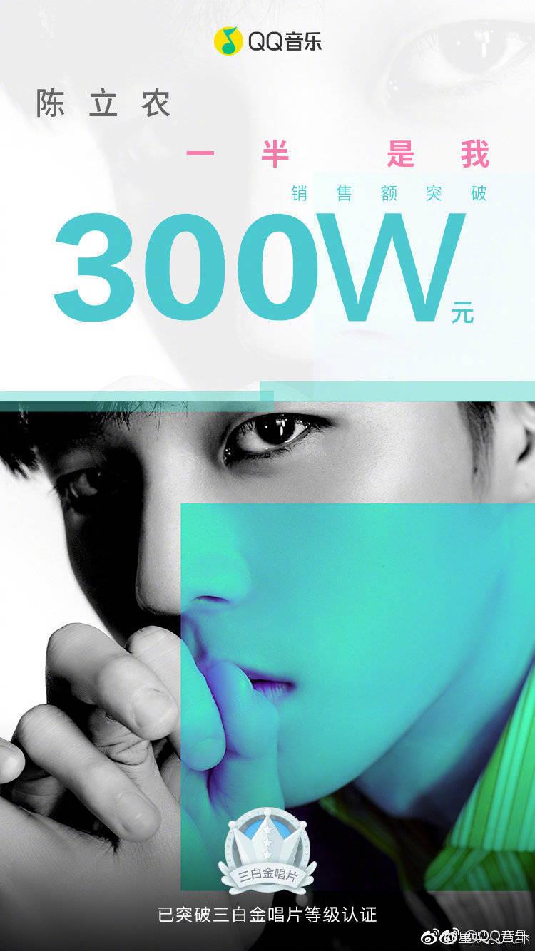 陈立农新歌 陈立农《一半是我》 陈立农2019全新单曲《一半是我》如约而至,正式上线。 陈立农最新数字单曲《一半是我》,2019年1月1日0点上线后,以14秒突破金唱片认证,19秒突破双金唱片认证,26秒突破三金唱片认证。28秒突破白金唱片认证,51秒突破双白金唱片认证,1分55秒突破三白金唱片认证的超级速度,成为2019年首张三白金唱片认证数字专辑,销售额已突破300万。有实力有人气,2019年红红火火的开始。少年清澈纯净的嗓音,歌声里盛满爱意,超级好听!是被天使吻过的嗓音,2019的第一天接收来自农农的专属礼物,温暖深情甜蜜!新年伊始,一切美好从动听的歌声开始。@陈立农┍┄┑ ┊新 愿你一直笑着灿烂┊年 一半是我新歌大卖┊快 有梦可依┊乐 愿你的世界无尘 望你的前路无碍新年快乐 ┊└┈┙