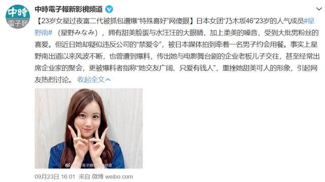女艺人星野南发文官宣将退出娱乐圈,年仅23岁