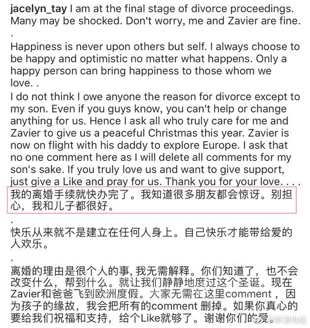 11月18日晚,曾主演过《东游记》的,她在社交网站上发文表示:“我的离婚手续就快办完了。我知道很多朋友都会惊讶。别担心,我和儿子都很好。快乐从来就不是建立在任何人身上。自己快乐才能带给爱人快乐。离婚的理由是很个人的事,我无需解释。”据悉郑秀珍与老公黄心川结婚八年,育有一子Zavier,她的代表作还有《笑傲江湖》《天使的诱惑》等。