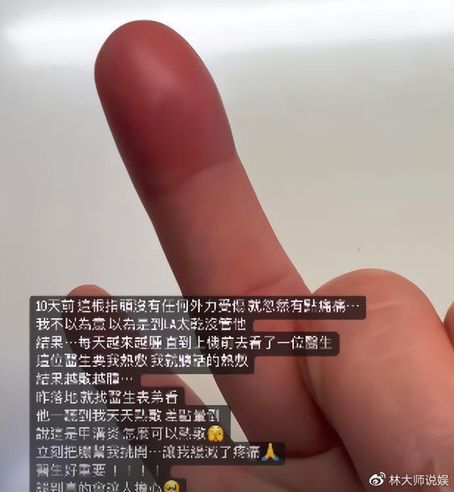 前几天贾静雯还晒出自己手指红肿的照片,称之前手指没有受到任何伤害,突然无缘无故开始红肿疼痛,吓得她赶紧跑去看医生。