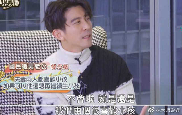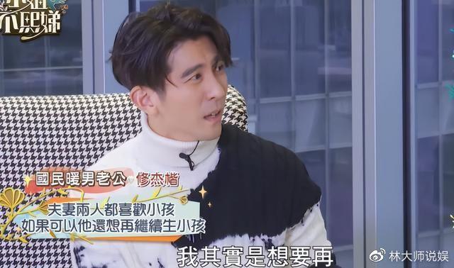 只不过修杰楷似乎还不满意,从之前上节目时跟小S说的话来看,他还有要第四胎的打算,而且希望家里的孩子越多越好。
