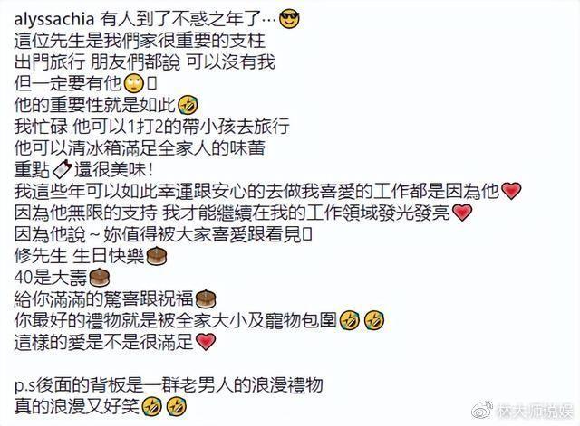 修杰楷在家人面前十分放飞自我,还用棉棒捅鼻孔的行为搞怪又可爱,被贾静雯偷拍下来,夫妻俩的互动真是太甜了。在40岁这样一个分水岭,贾静雯特意为老公写了一篇感言,称修杰楷在自己的家人朋友面前,比她本人还要受欢迎。