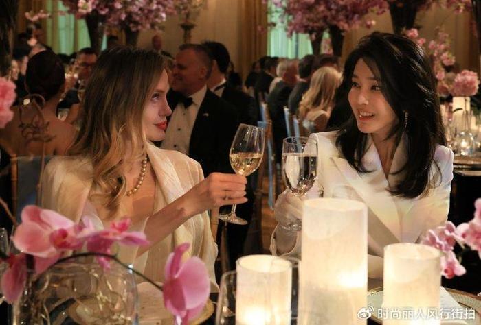 而白裙被换成了仙气十足的米色薄纱裙,这样的搭配更加增添了朱莉的女神魅力。薄纱裙的轻盈飘逸,让她在白宫的晚宴上宛若仙女般,散发着令人心动的神秘气息。