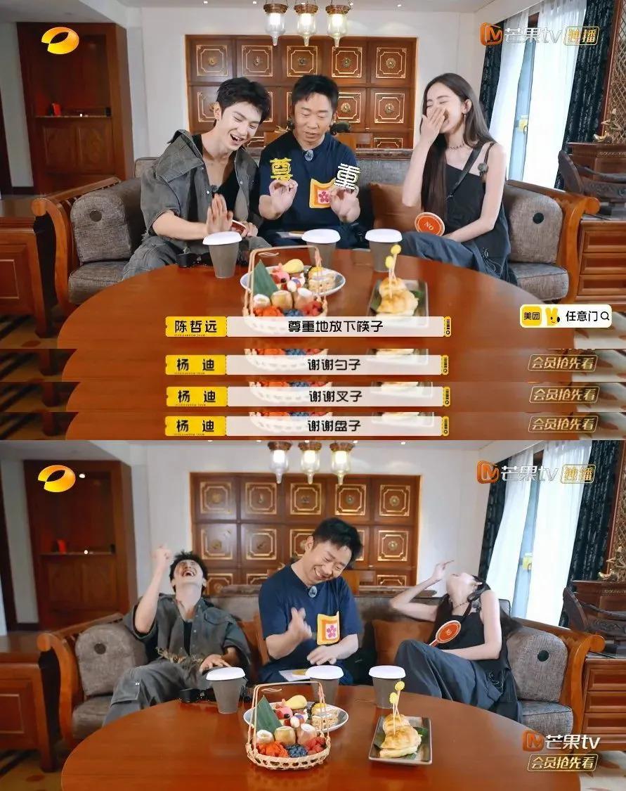 杨迪和远子立马就演起来了,怎么个尊重法,谢谢勺子,谢谢叉子,爱你哟,比心