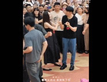她本来还有点害羞,他找准时机一把牵起她的手一起跳舞!