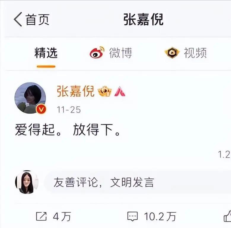 张嘉倪一句 " 爱得起,放得下 " 再度引发网友热议和怒赞,那之后她被传出已开始专心投入工作," 大女主 " 人设立得相当牢固。