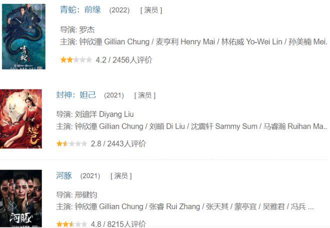 这几年阿娇主演的作品,评分连及格线都到不了,弹幕几乎也是差评一片。