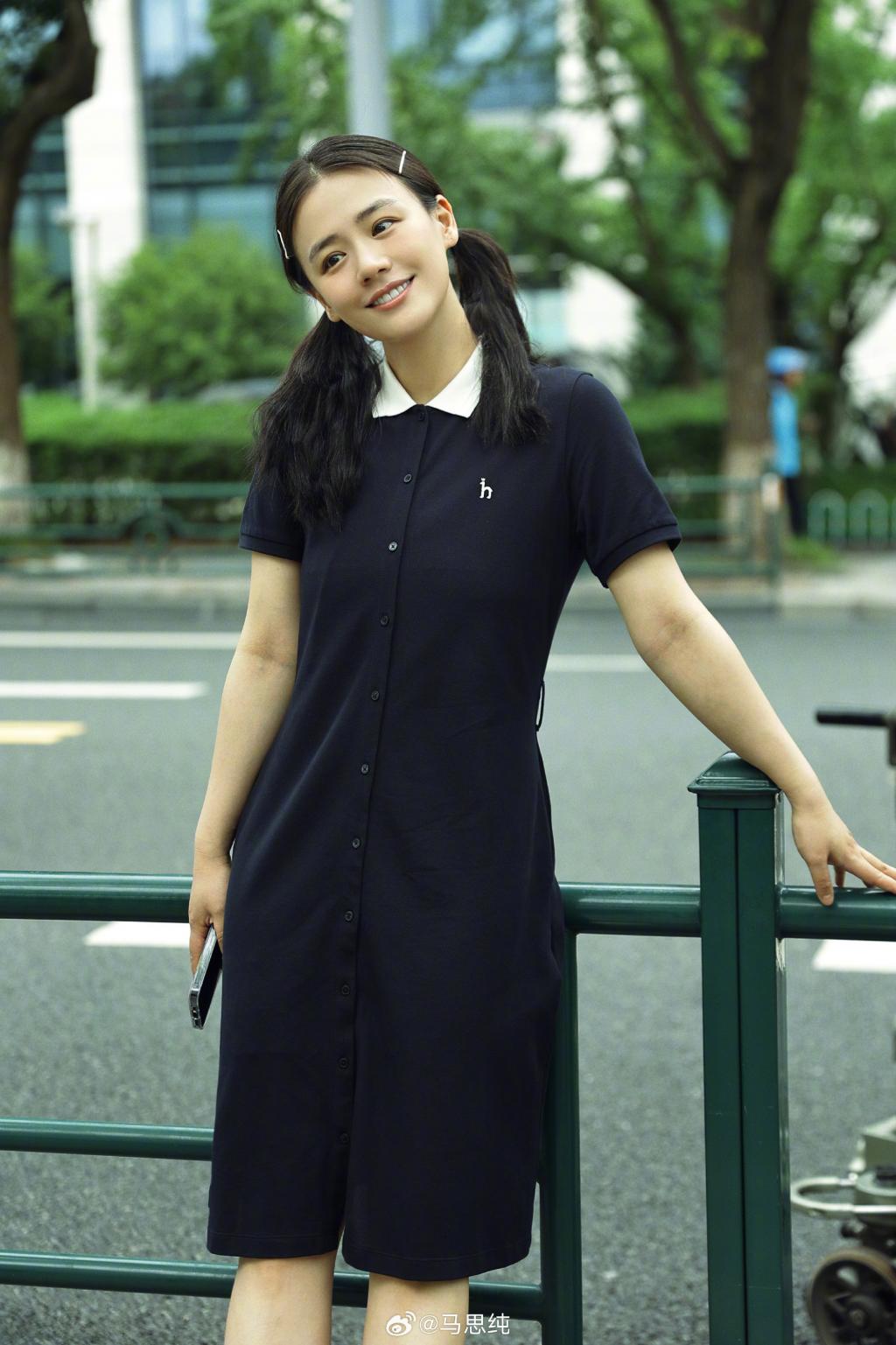马思纯的一组美照曝光,她身穿黑色连衣裙搭配双马尾造型,俏皮减龄,在街边笑容明媚治愈。
