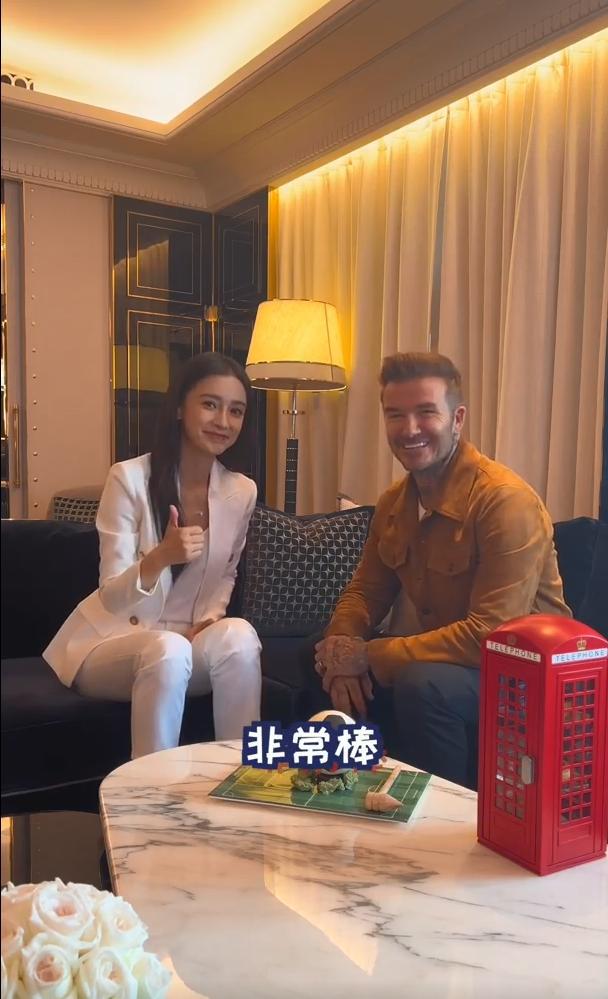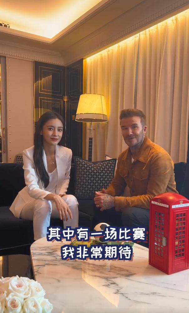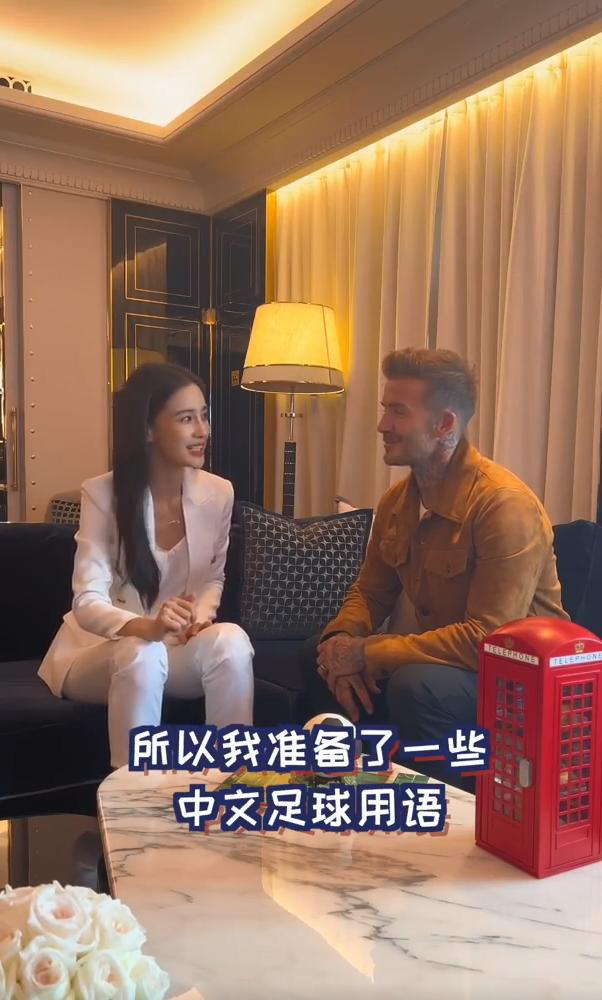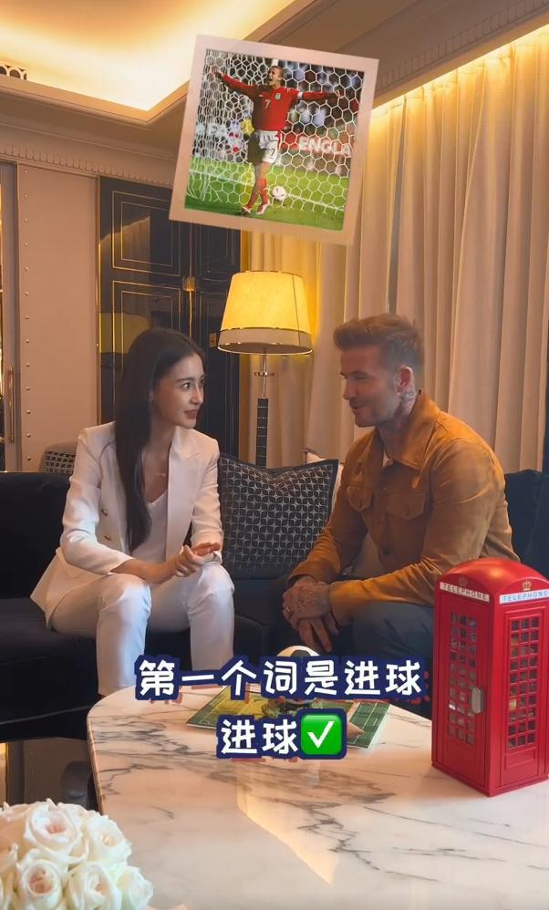 新浪娱乐讯 8 月 1 日,贝克汉姆在微博发文为女足世界杯加油,还感谢 Angelababy 教自己说中文。视频中,baby 身穿白色西装套装显干练,与贝克汉姆用英文对话,十分流畅标准。