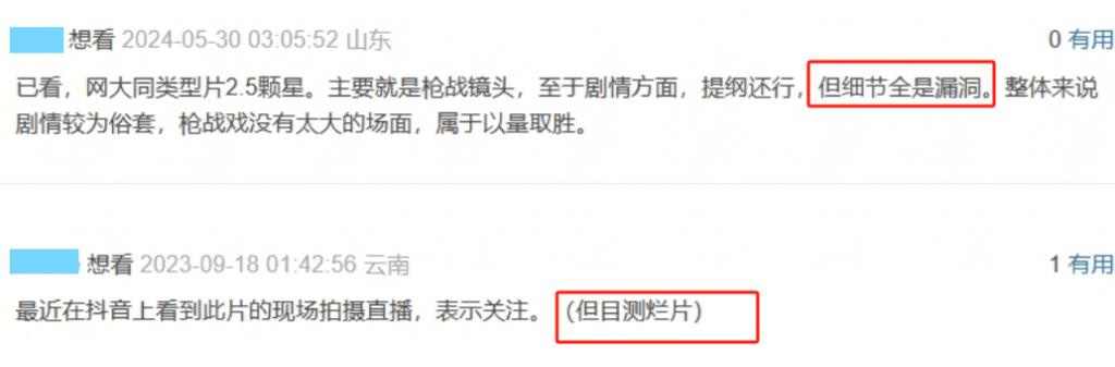 评论区的网友比较委婉,但," 烂片 " 两个字也已经藏不住了。