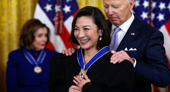 另外拜登在颁发勋章时还叫错了杨紫琼的名字,还是杨紫琼及时提醒,或许是因为获奖人士的提名全部是拜登下属团队选择,而不是其亲自筛选,在颁发具有最高荣誉奖章的时候发生这样的小意外,也从侧面证明这个奖章确实挺平民化的。