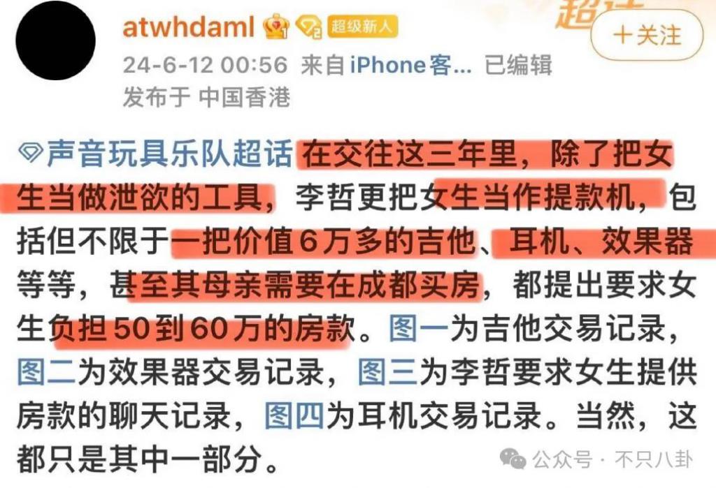 李哲毕竟糊咖一枚,曝光贴并没引起多大注意,女生到了凌晨直接开大,发文细数怒斥李哲的累累「罪状」,信息量超惊人。