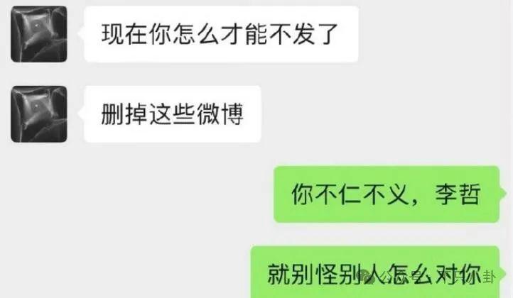 女生的爆料持续进行,李哲见后院起火,赶紧找到女生协商,聊天截图成了素材实锤,被女生继续曝光出来。