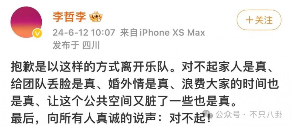女方实锤在手,李哲也没再挣扎,承认了所有劣行,表明自己会退出乐队。