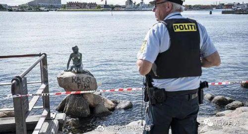 去年,丹麦哥本哈根海边的美人鱼雕像,被人用黑漆在基座上喷上了“种族歧视之鱼”的文字,还有人扬言要拆除美人鱼。