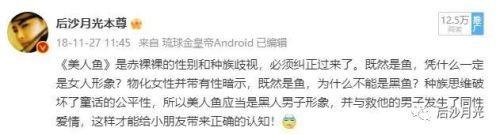 那再过两年,黑人男子版《美人鱼》是不是该在美国上场了,这才能更加进步嘛,更加多元嘛。