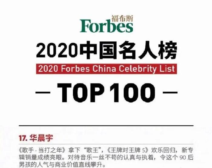 2020年8月,他登上了“福布斯中国名人榜”第17位。
