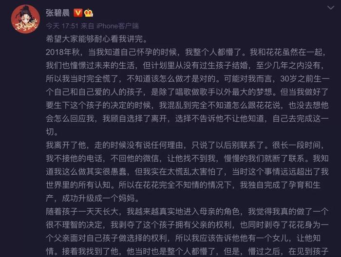 随后,当事方之一的张碧晨也发布微博解释事情的来龙去脉,表示两人育有一个女儿。