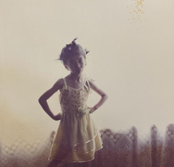 张雪迎晒6岁旧照,穿牛仔流苏裙十分洋气,从小就瘦得像竹竿