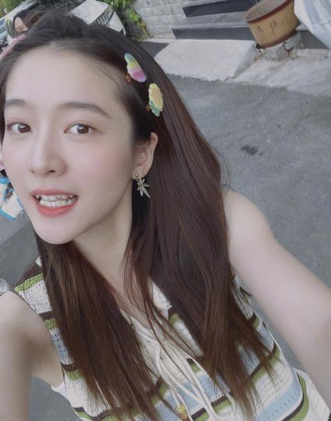 不知道是不是为了迎合过节的气氛,张雪迎特地给自己带了两个非常可爱的卡通发夹,一个彩虹图案心形,一个类似向日葵的花朵,看起来都很有少女心。画面里张雪迎歪头看着相机,皮肤白皙透亮,妆容淡雅得体,单论颜值来说,张雪迎是很耐看@趣视时尚。