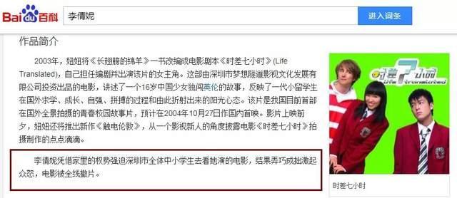 不过,姚安娜这种富二代混娱乐圈,并不是个例,也不是首例,最著名的要数前深圳某官员的千金李倩妮,凭借着家里的背景,硬是让陈冠希跟她拍了部电影——《时差7小时》