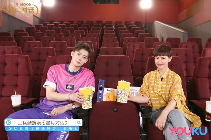 帅气男神@张铭恩 做客与主持人@王江月 一起走进电影院观看;打卡网红