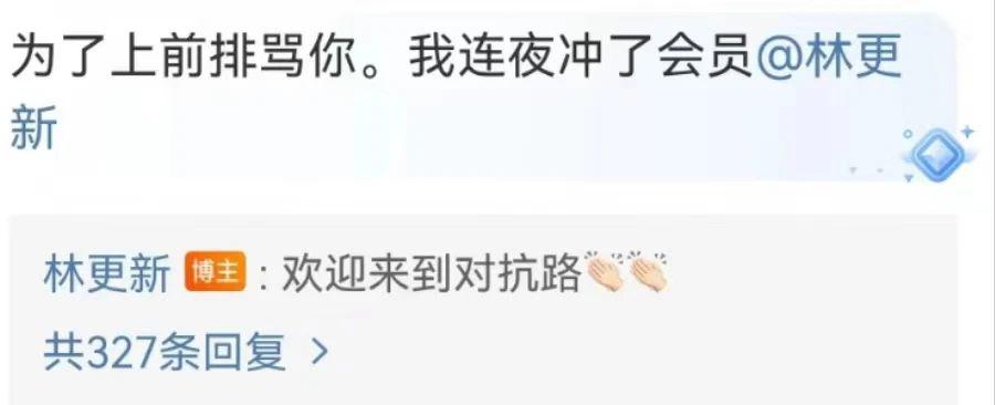 不管路人还是粉丝,无论微博还是抖音,只要在评论里 " 怼 " 自己的,林更新一律不放过。