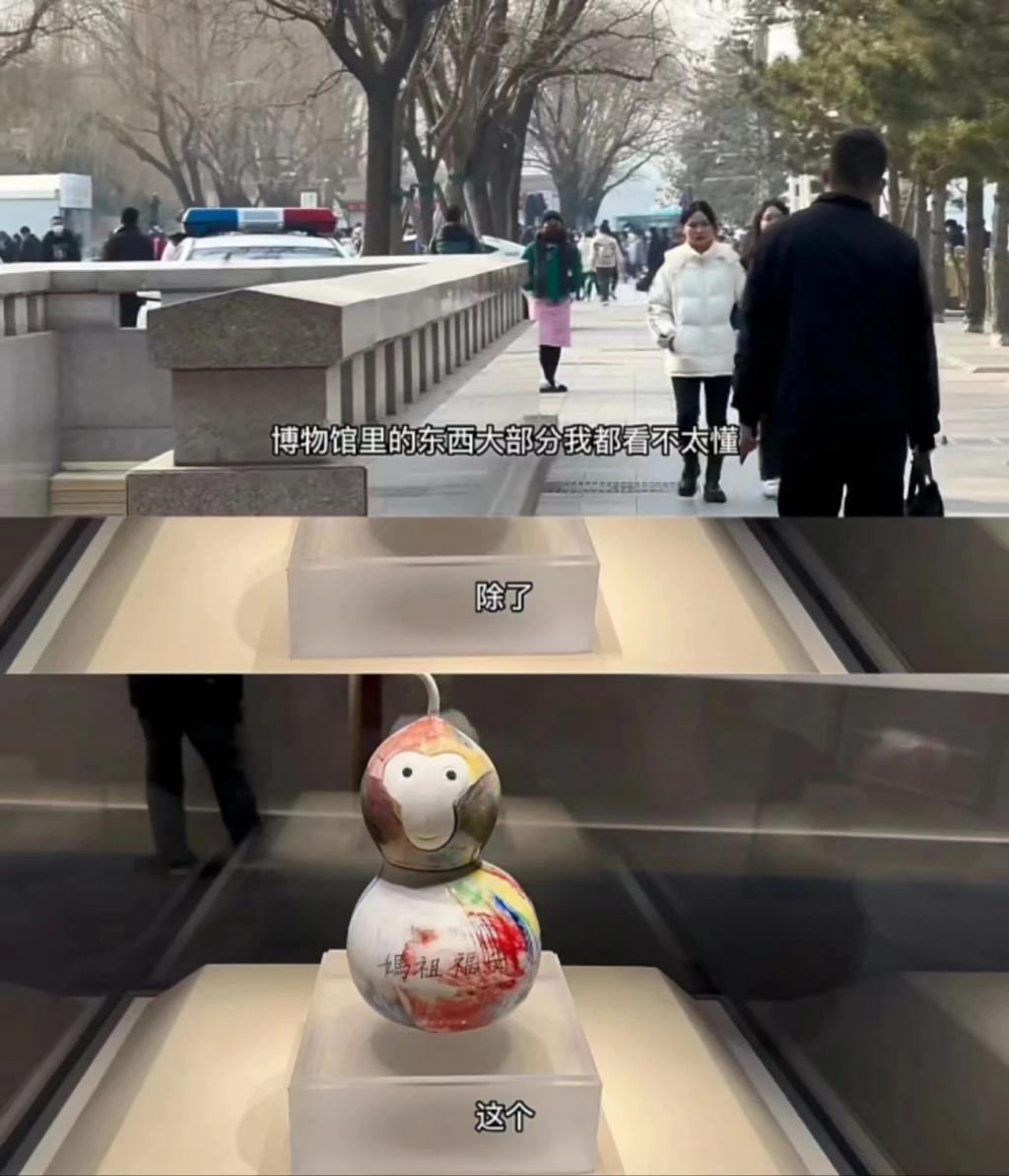 视频里要么是出去玩逛博物馆,但直言 " 大部分东西我都看不太懂 ",只怼着好玩的、像表情包的展品咔咔拍;