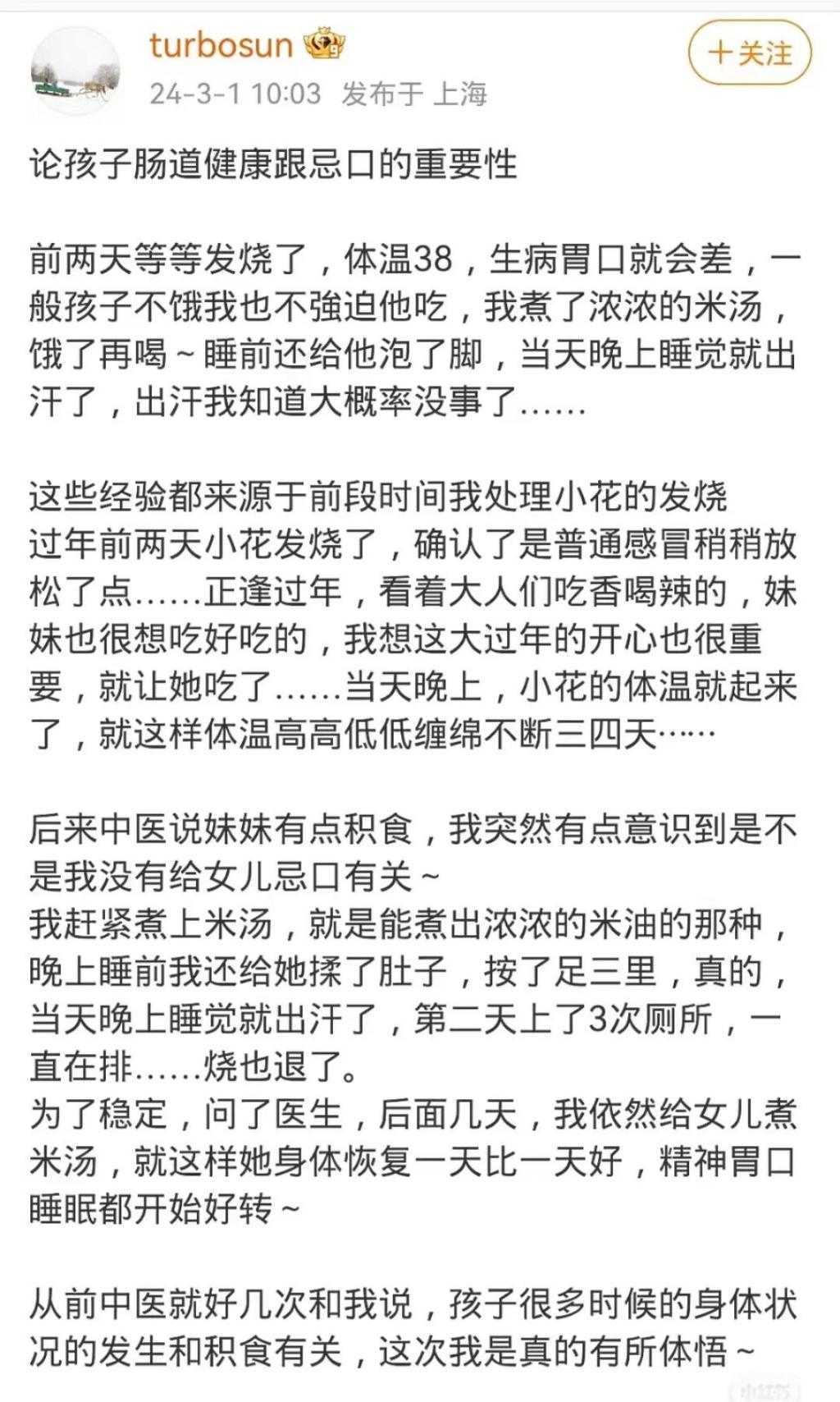 她的微博 id 不光没用真名,里面的博文还大都是育儿记录,生活感悟一类。