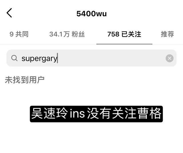 在吴速玲的ins里,关注栏搜索曹格的名字显示的是未找到用户。同样的,在曹格的ins里关注栏也搜不到吴速玲。再结合曹格近日凌晨连续发文,让人怀疑这对夫妻虽然没有官宣离婚,但夫妻名义早已名存实亡。