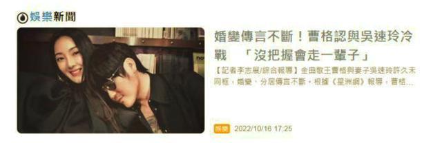 金曲歌王曹格与妻子吴速玲的婚姻一直走下坡路,甚至一度被传亮红灯,而就在近日,有网友发现曹格半夜宣泄过自己的情绪之后,曹格与吴速玲的ins已经互相取关,更加证实双方感情已经告急。