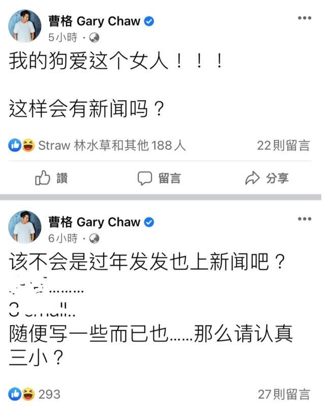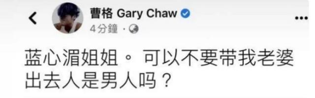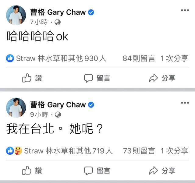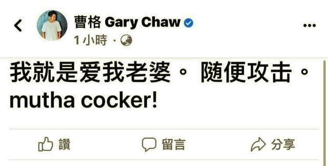 既然爱老婆,那就说明双方还有挽回。结果没过多久曹格又开始“胡言乱语”,在评论区飙脏话,甚至还隔空喊话老婆:“我在台北,她呢?”言外之意当时吴速玲并不在曹格身边,字里行间也有点埋怨的语气。