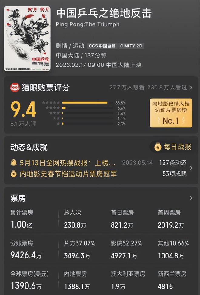 这部以中国乒乓球运动员为焦点的电影,本身内容上没有太大问题,这一点从豆瓣评论区的众多好评就可以看到。