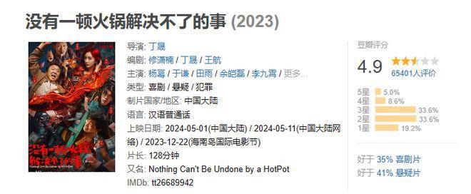 不过,归根结底,还是电影 " 报看 ",豆瓣评分仅有 4.9 分,以这种质量,换八百个档期也够呛能获得理想票房。