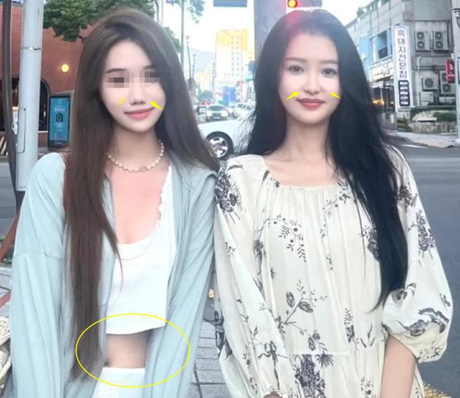 再看孙怡和女粉丝的合影,更能看出区别。女粉丝身高和孙怡相当,穿着露脐装大秀好身材。怼脸看女粉丝皮肤光滑紧致,鼻头尖尖的。孙怡反而有法令纹,而且鼻头有些变大。难怪网友感慨:第一眼我还以为她怀孕了。