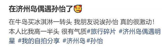 又有网友在济州岛偶遇孙怡了,这次同行的还有孙怡的女儿大福。