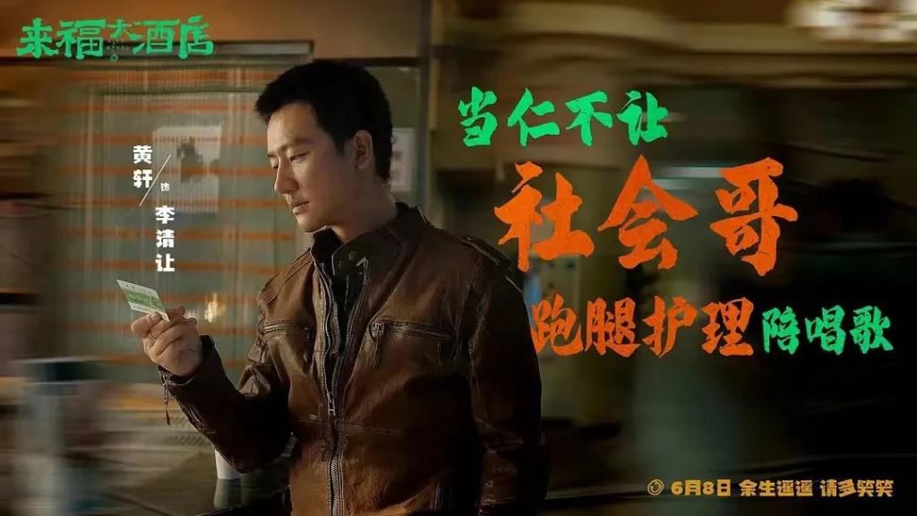 所以它和《药神》的表现方式一样,都是先去塑造一个 " 圣人 "。《药神》里写的是徐峥饰演的程勇,他为了能让白血病人吃上便宜药不惜自己贴钱甚至坐牢,而《来福》的主角是黄轩饰演的李清让,他为了不让酒店被暴力拆迁甚至准备与酒店同归于尽。