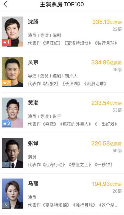 在《飞驰人生 2》之后,沈腾现在的主演票房高达 335 亿,已经反超吴京,拿下了 TOP1 的位置。