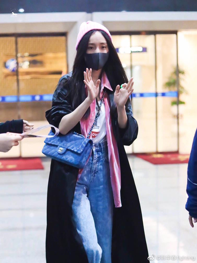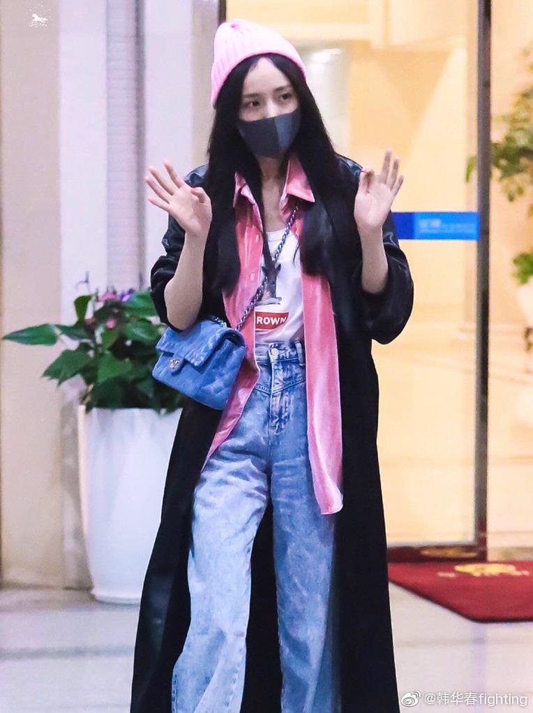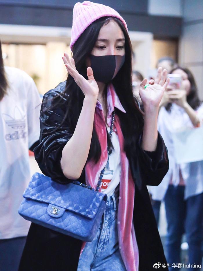 杨幂抵达长沙录制新一期的《密室大逃脱》,装扮清新亮丽宛如少女