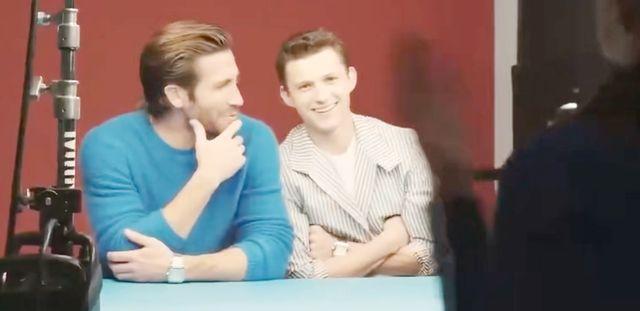 2、成功当上蜘蛛侠后,他又许愿自己很想和杰克吉伦哈尔合作,结果《蜘蛛侠:英雄远征》就真的让老哈来扮演神秘客。