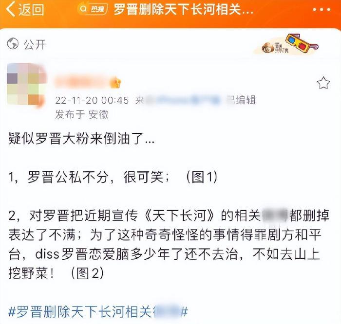 如今,事件还在持续发酵,罗晋的粉丝也开始纷纷脱粉,《天下长河》收视也并不理想。可以说达到了双输的结果。对此,你有什么想说呢?