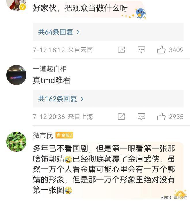 没有演技支撑角色的天真活泼个性,黄蓉一角算是毁了,而且外貌形象也遭到部分观众的热议,以至于开场没多久,颜值、演技双双拉垮口碑。