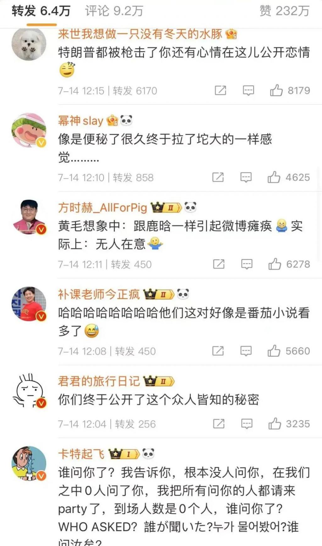 因为,全都是在嘴他俩的骚操作,其中参杂着一些粉丝的哀痛怒吼,还有一丢丢路人对粉丝的同情。