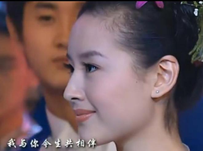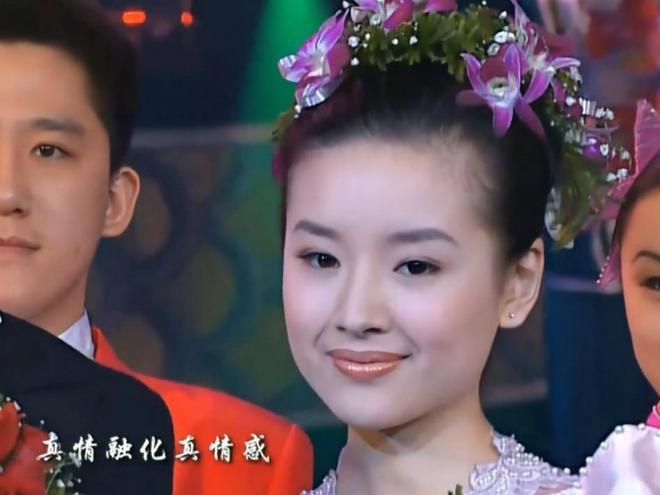 20 岁的时候,董洁得到了春晚舞台《今生共相伴》的伴舞机会,结果因周迅把头发染紫无缘春晚而被推上 " 新娘 " 主角的位置,她穿着粉色婚纱,站在谢霆锋身边,不用说话,含情脉脉,眼带笑意,纯洁美好,360 度无死角。
