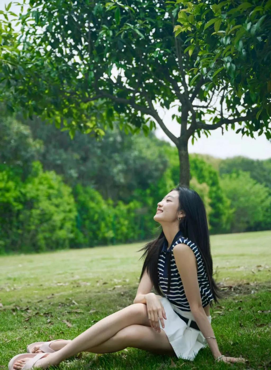 这位年轻的女演员在社交媒体上分享了一张自己在户外晒太阳的照片,照片中的她直接趴在地上晒背,享受着阳光的沐浴。