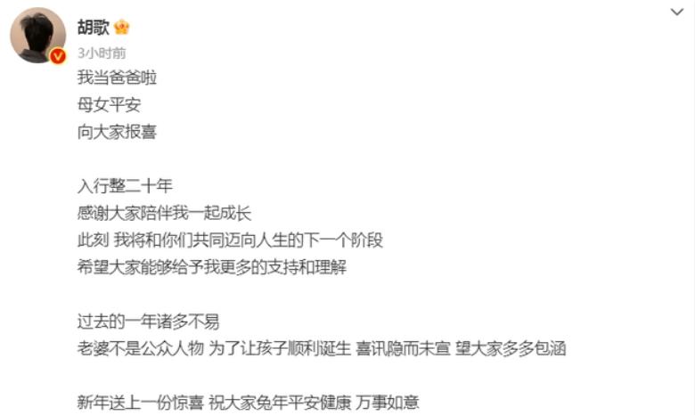 没成想,突然公布消息,就是自己已经升级做了父亲,母女平安。