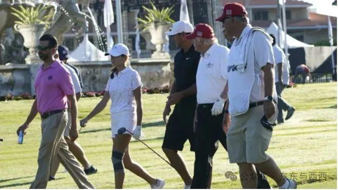 凯伊经常和老特一起打高尔夫,她说:如果我们不在同一队伍,他就会想方设法干扰我打球,但我总有办法屏蔽干扰,因为我也姓特朗普。。。